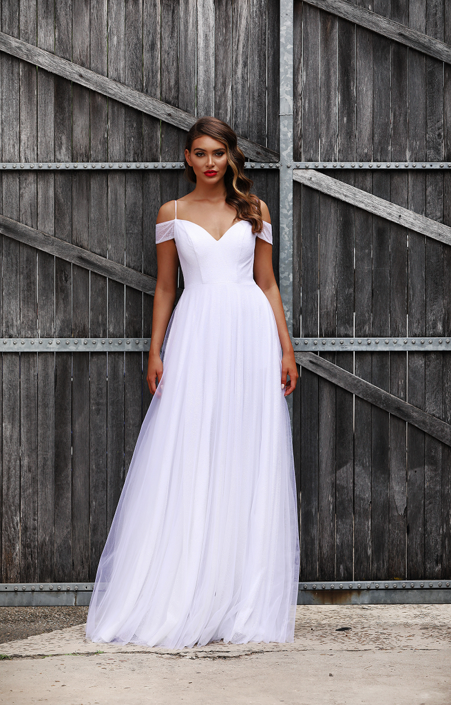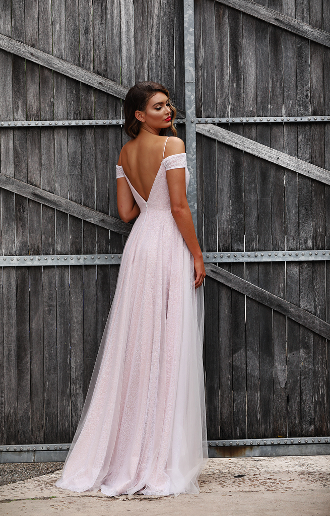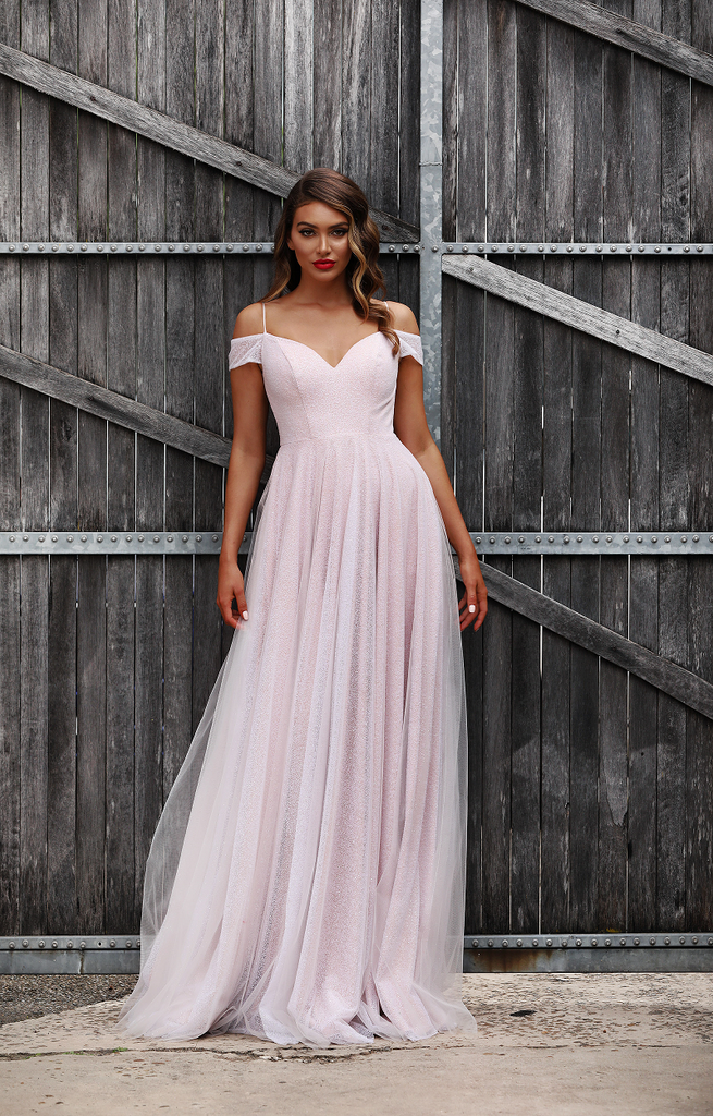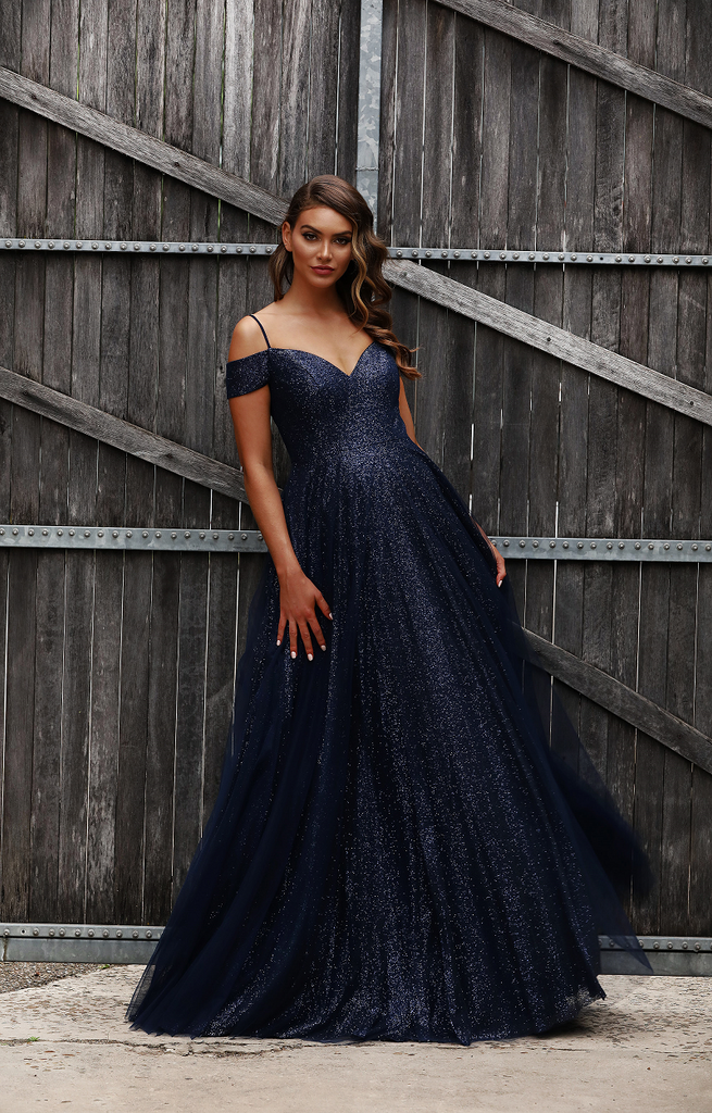 A beautiful full length gown by Australian Designer Jadore, Style JX3029. Featuring an off the shoulder, sweetheart neckline and a v-cut back. The Cynthia gown is fitted at the waistline before flaring out to create an elegant A-line silhouette.