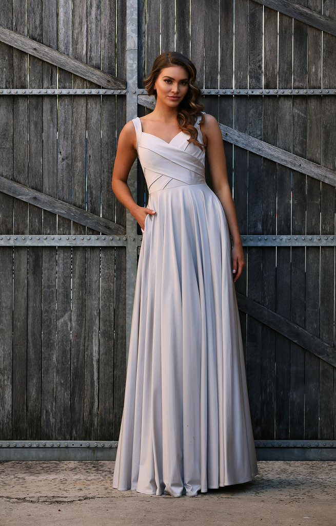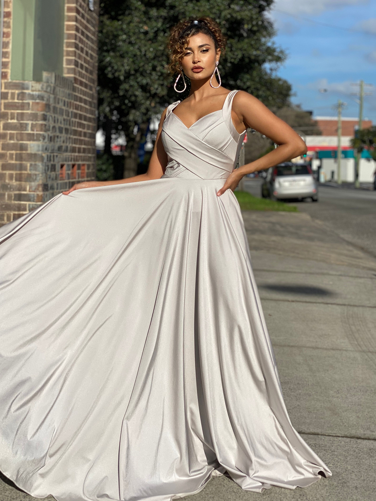 A stunning full length gown by Australian Designer Jadore, Style JX3054. The Francesca Gown features a sweetheart neckline with a cross over detailing on the bodice, as well as a v-cut back. This gorgeous style is fitted at the waistline before flaring out to create an elegant ball gown silhouette.