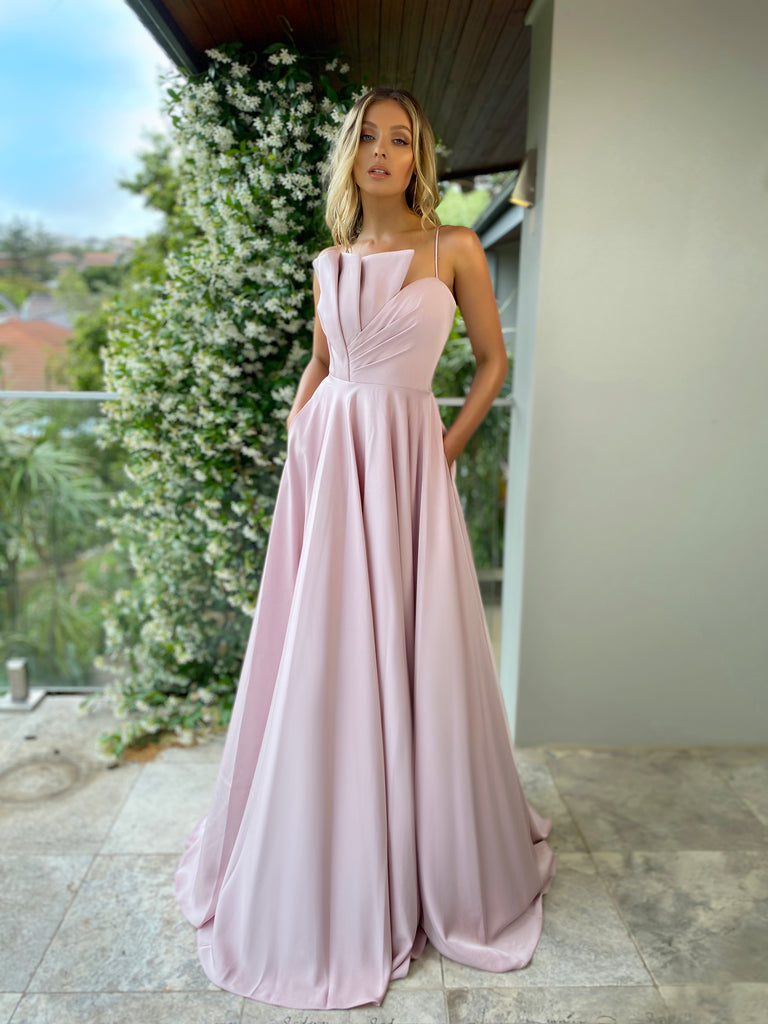 A stunning full length gown by Australian Designer Jadore, Style JX5010. The beautiful gown features a structured top for a more stylish fit. The Opal gown also features a thin strap overlay neckline, and is cinched at the waistline before the skirt flares out to create the classic a-line silhouette.