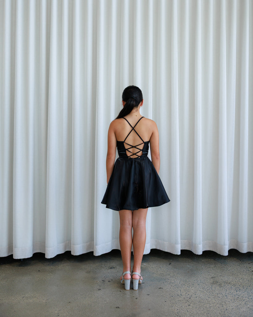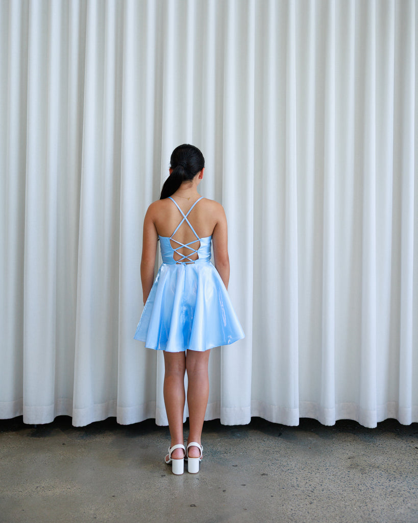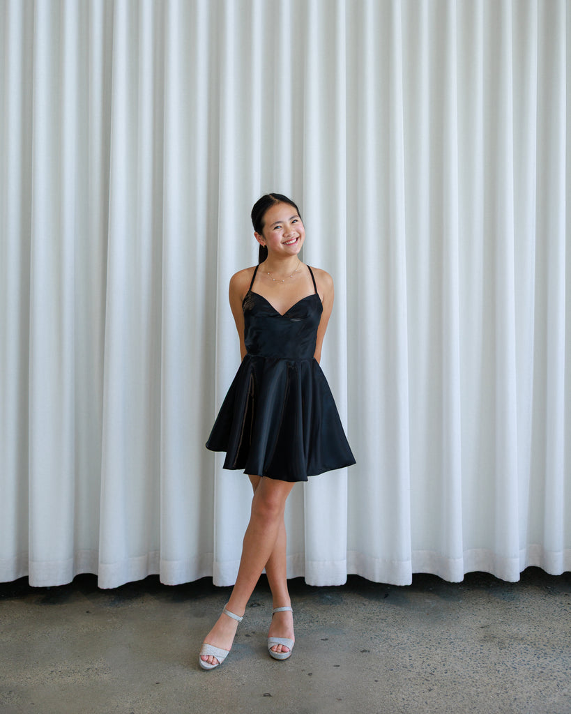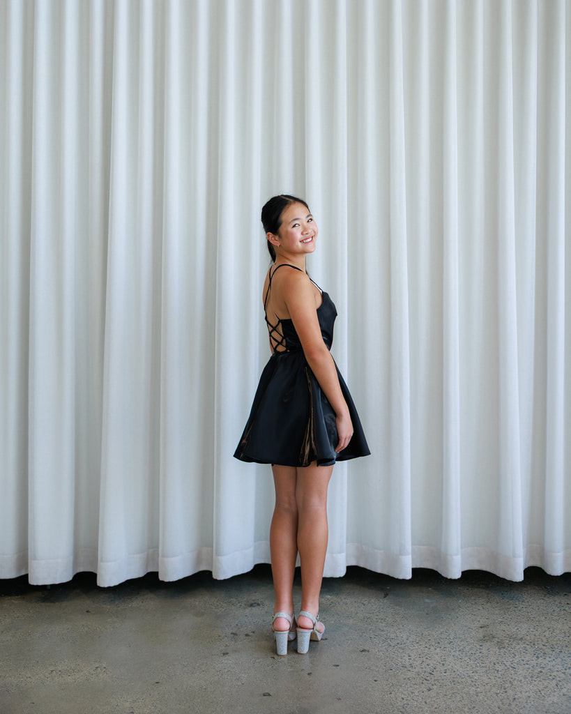 Get ready to feel like a real princess in the Wishful Gown (BP1004) This dress is pure magic—it's short, flirty, and absolutely perfect for dancing and celebrating. The bodice is cute and fitted, but the best part is the full, bouncy skirt that loves to twirl! You'll feel comfortable and free to move at your dance or party. The little spaghetti straps are delicate and pretty, and the whole dress is designed to make you shine and have the best night ever!