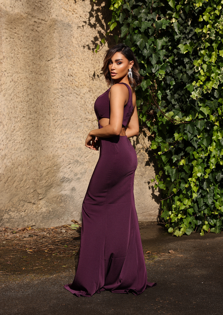 A lovely full length gown by Australian Designer Jadore. The Melody Dress is a one shoulder style, which features a gorgeous cut out opening across the side to the back of the dress. This form fitting dress complete with a high side split.
