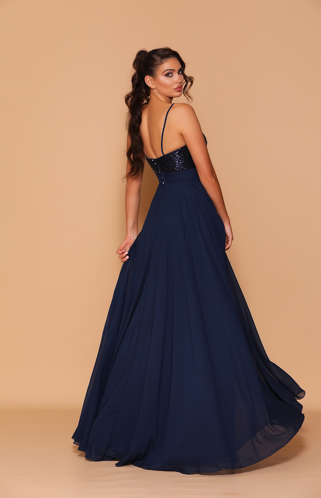 A beautiful full length gown by Australian Designer Les Demoiselle, Style LD1093. A stunning sequin detailing covers the bodice of the Meira Gown, which also features a sweetheart neckline and spaghetti straps. The Meira gown is cinched at the waistline before flaring out into a flowing skirt, to create the elegant ball gown silhouette.