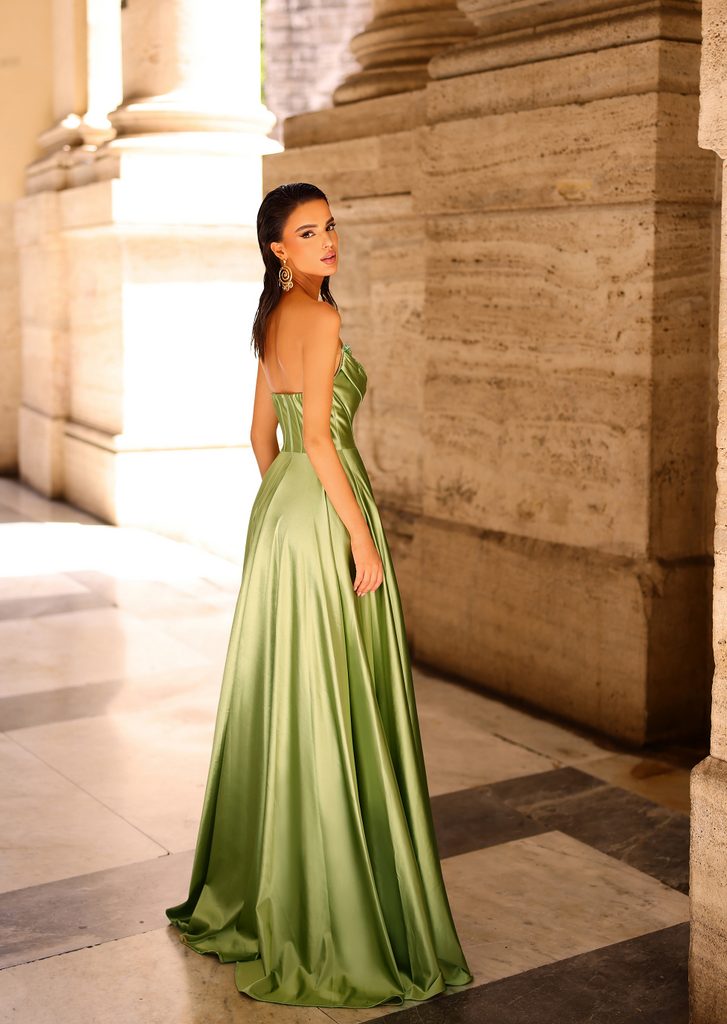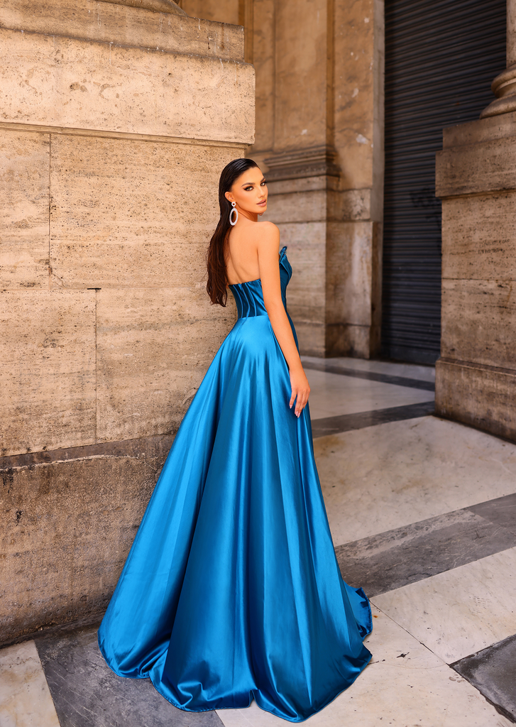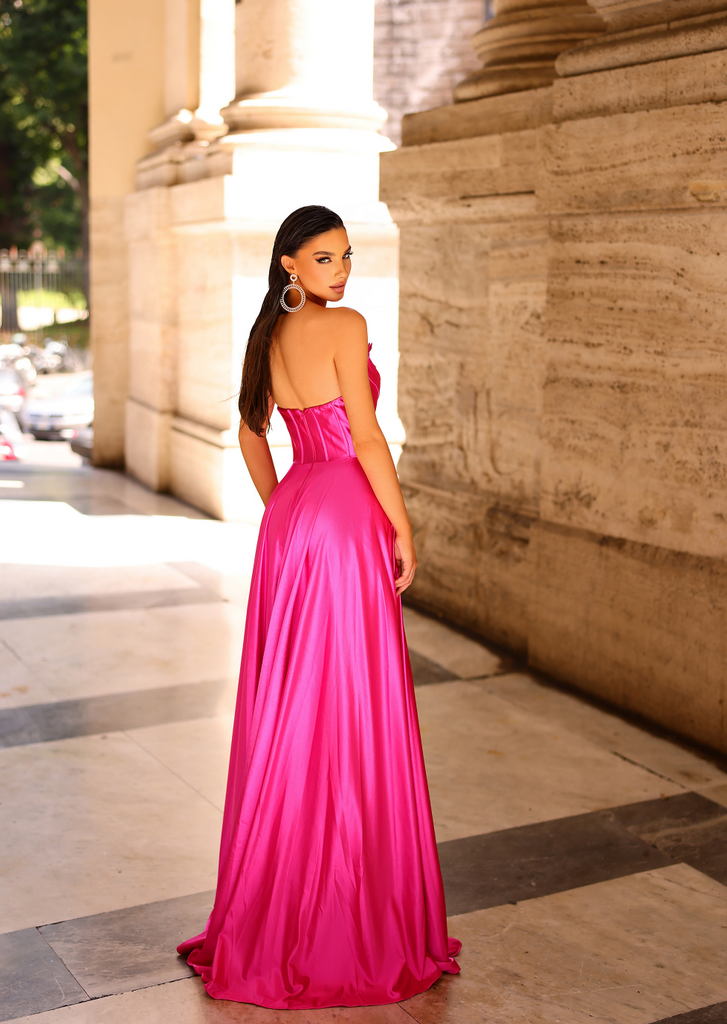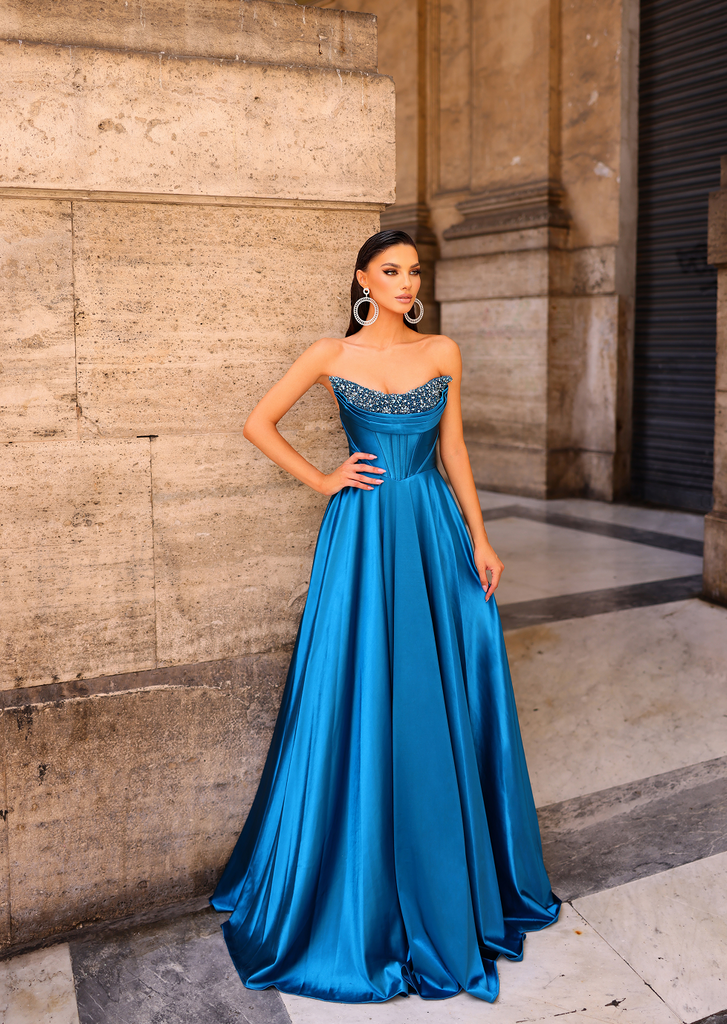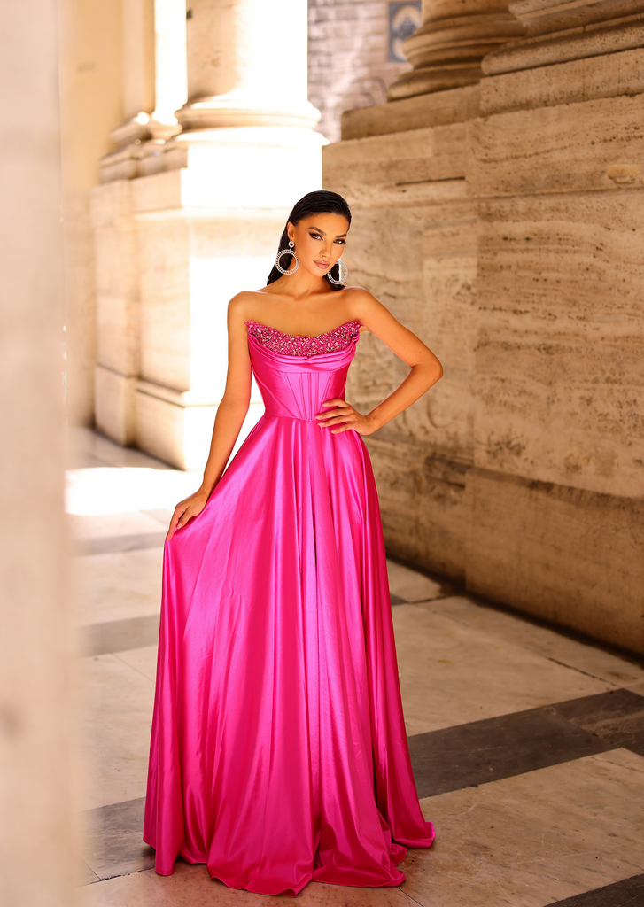 Get ready to flaunt your style in the NC1033 Adalee Gown, a luxurious masterpiece by renowned Australian designer Nicoletta. Featuring a strapless corset top and padded bust with stunning beaded details, this elegant outfit boasts a full A-line skirt for a truly eye-catching appearance.