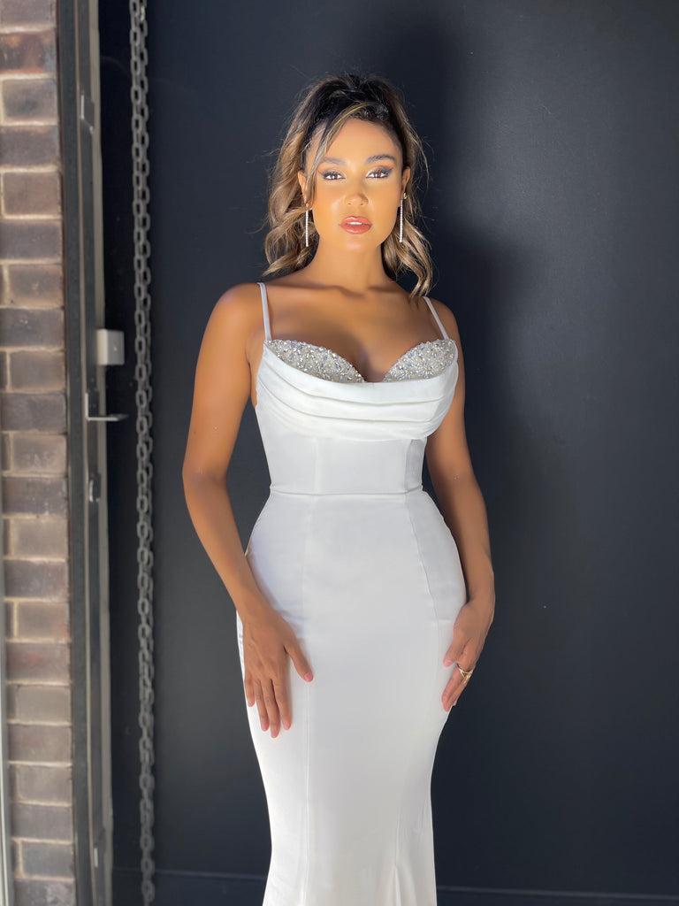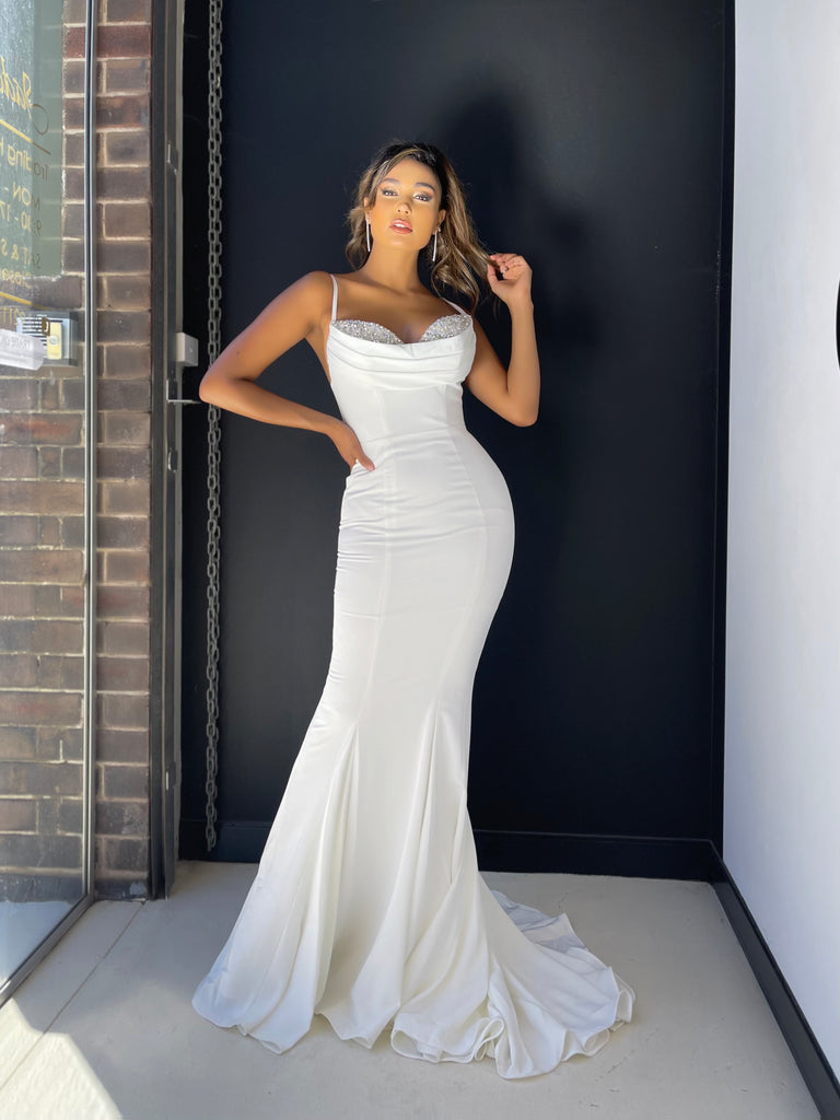 A stunning full length gown by Australian Designer Jadore, Style JX5016. The Esra Gown features spaghetti straps and a sweetheart neckline, completed with a scooped overlay on the bust. The Esra Gown also features a criss cross back detailing on this form fitting gown, which is finished with a mermaid style skirt.