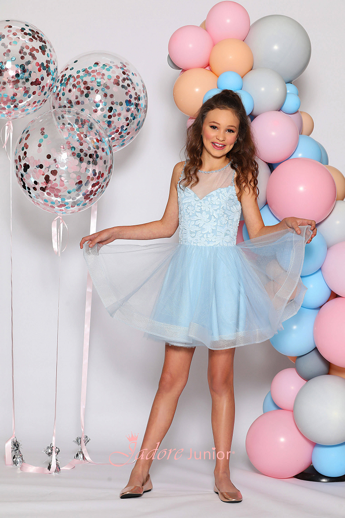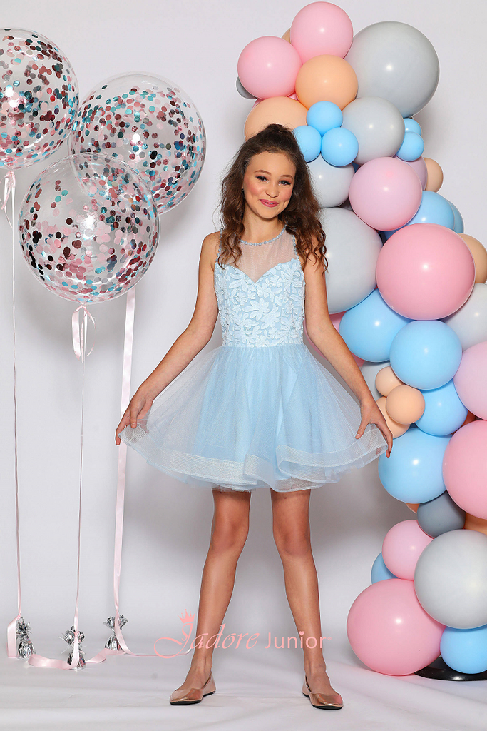 A lovely midi length dress by Australian Designer Jadore, Style JR09, from their Junior Collection. The bodice of the Felicity Midi features a beautiful floral applique detailing, and also features a mesh detailed, high neckline, complete with beading, and an illusion sweetheart neckline. The Felicity Midi is also fitted at the waistline before flaring out into a beautiful A-line style skirt.