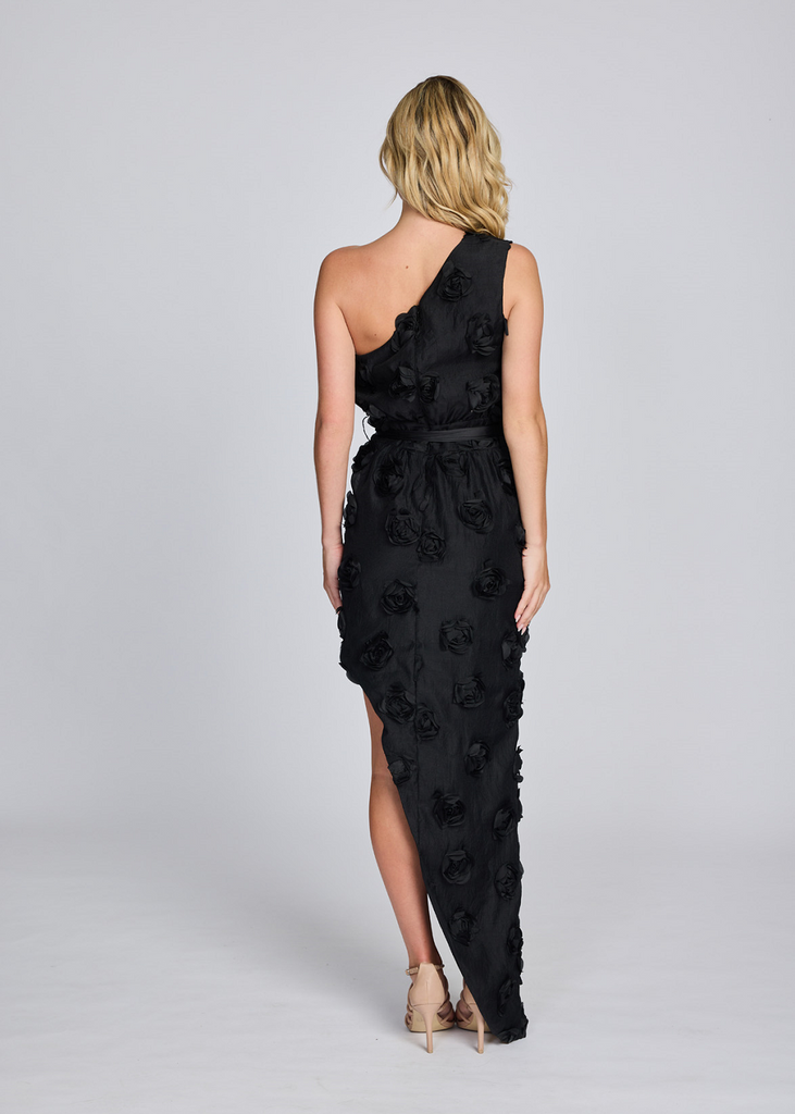 Discover the perfect dress from Romance The Label, a top-notch Australian brand! Featuring one sleeve and a 3D floral applique fabric, a waist tie, and a unique leg opening, this dress effortlessly embodies style for all body types. Experience effortless style with just one dress!