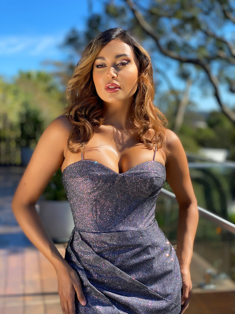 Our flattering Marisa Gown style JX5023 by Australian Designer Jadore. This stunning gown features a corset-style bodice with a padded bust, thin spaghetti straps and a draped over skirt with daring leg-split.