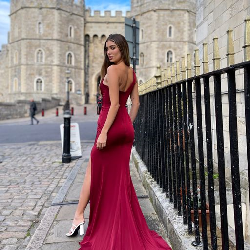 Elegant and stylish in our classic Rhonda Gown style JP135 by Australian Designer Jadore. This gorgeous gown features a one shoulder design, with ruched detailing across the bodice, a high leg-split and a small train.