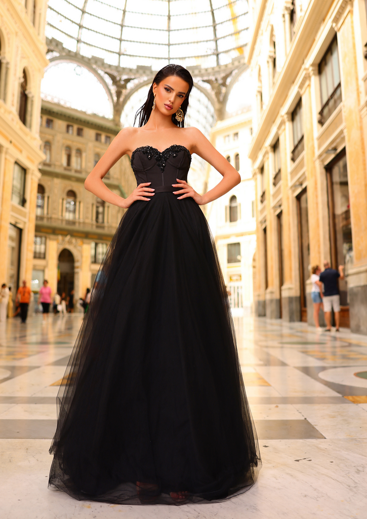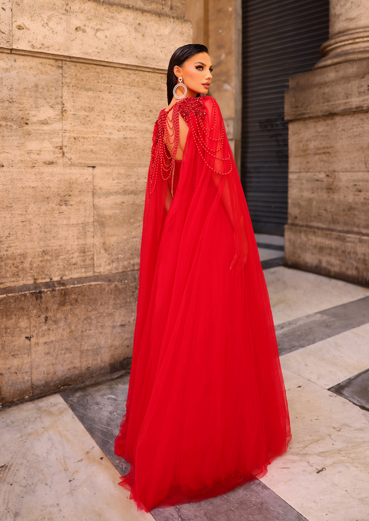 Go full glam with the NC1019 Safa Gown from Nicoletta! This dress from down under has it all - a strapless sweetheart neckline, beaded accents on the bust, a classic A-line shape, and a fitted waist for maximum curves. The best part? It comes with a detachable sheer cape featuring beautiful pearls for a touch of elegance. Wear it with or without the cape and let your inner fashionista shine! Get your hands on this must-have gown now!