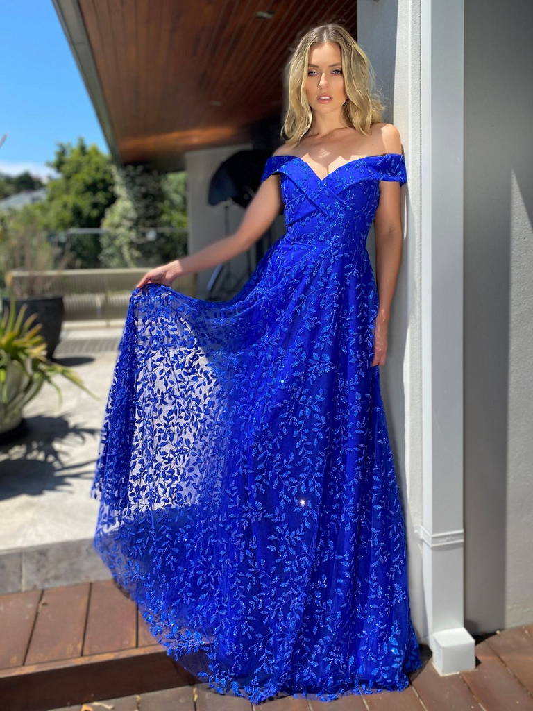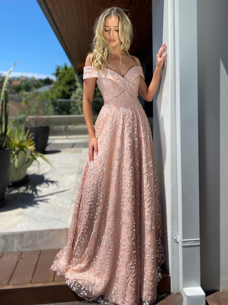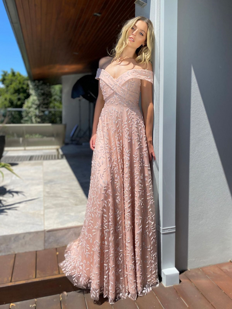A gorgeous full length gown by Australian Designer Jadore, Style JX5006. Stunning beaded embellishments decorate the length of the Simone Gown, which also features an off the shoulder, sweetheart neckline with a crossover detailing on the bodice. The Simone gown is cinched at the waistline before flaring out into a beautiful, flowing skirt.