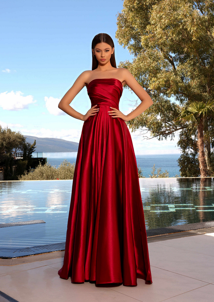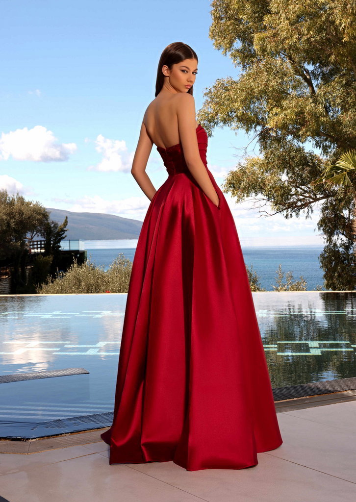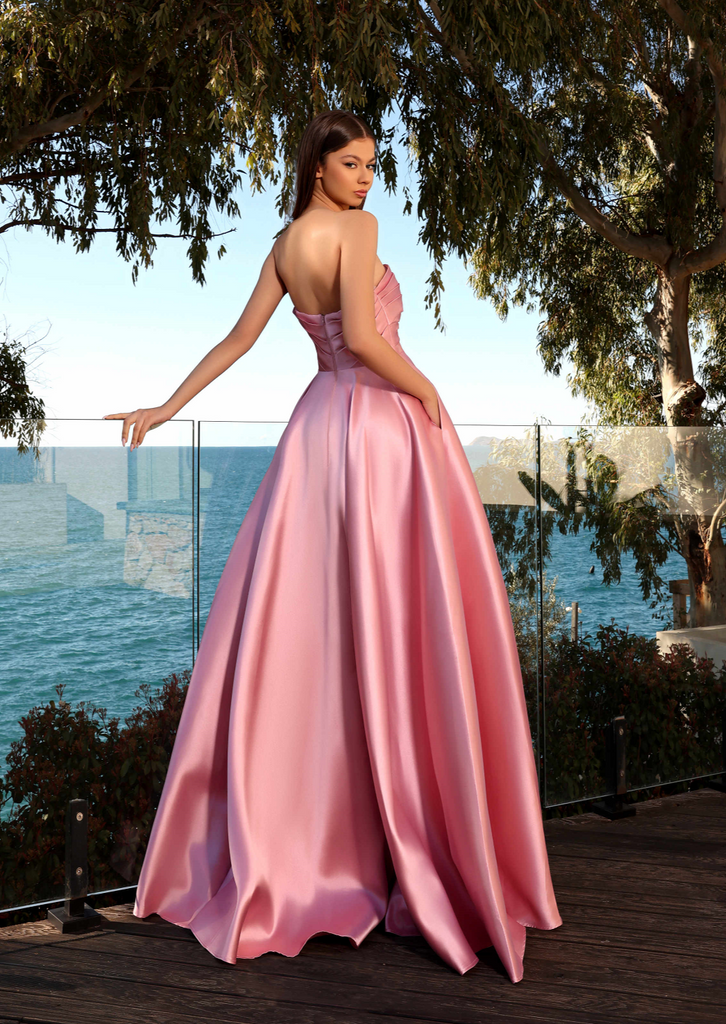 Unleash your inner fashionista with Nicoletta's NC2025 Zuri Gown, a chic full-length masterpiece from the land down under. This gown boasts a timeless pleated strapless straight neckline and a waist-cinching silhouette that glides effortlessly into a graceful floor-length skirt, complete with convenient pockets.
