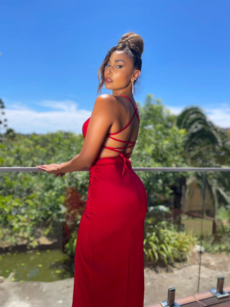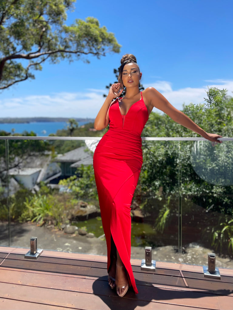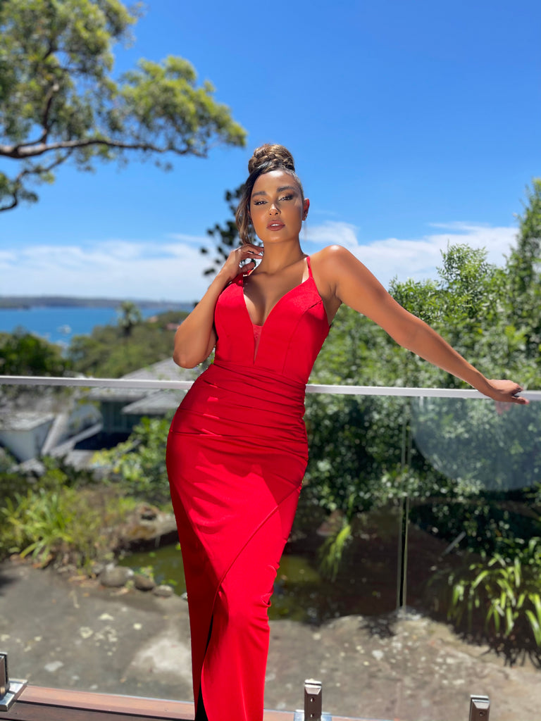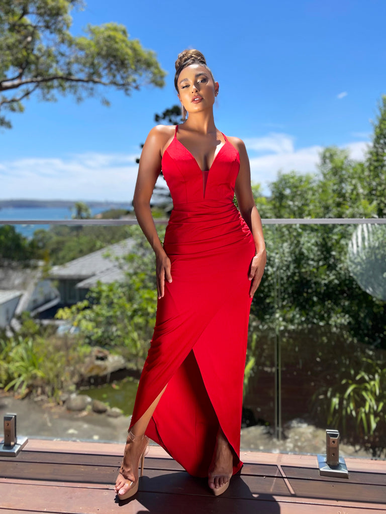 Our beautiful Troy Gown, style Jx5069 by Australian Designer Jadore. Featuring an open lace-up back giving you full control over the fit of this delectable wrap-style formal dress. The deep illusion v-neckline and asymmetrical high-low hemline.