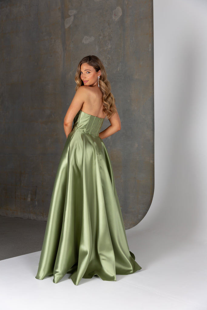 Make an entrance in our timelessly elegant Onana formal dress by Tania Olsen Designs, crafted from luxurious mikado fabric for a structured, polished finish. The corset bodice features boning and built-in bra cups to provide sculpted support and a secure, flattering fit.